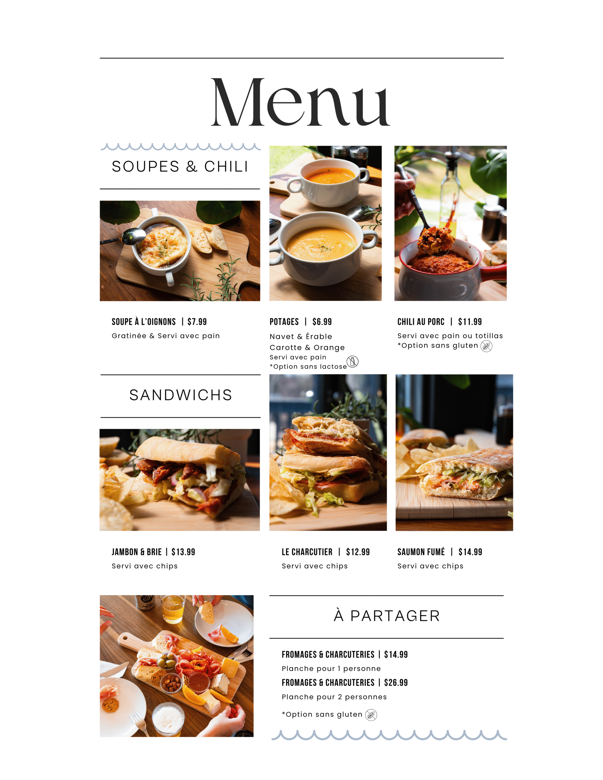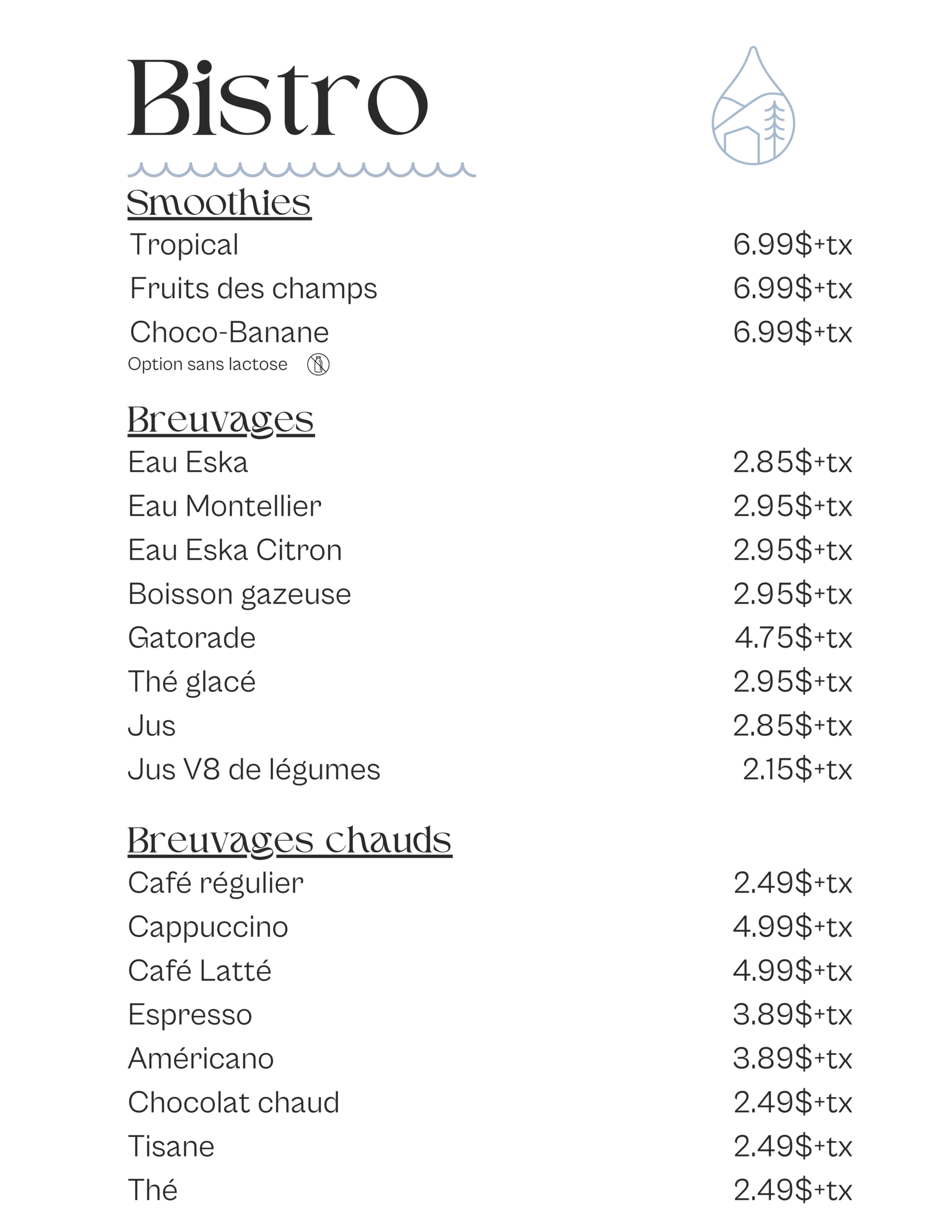 Our Bistro offers a fresh and varied menu that changes with the seasons and local ingredients. Enjoy a delicious break in a relaxing setting!
