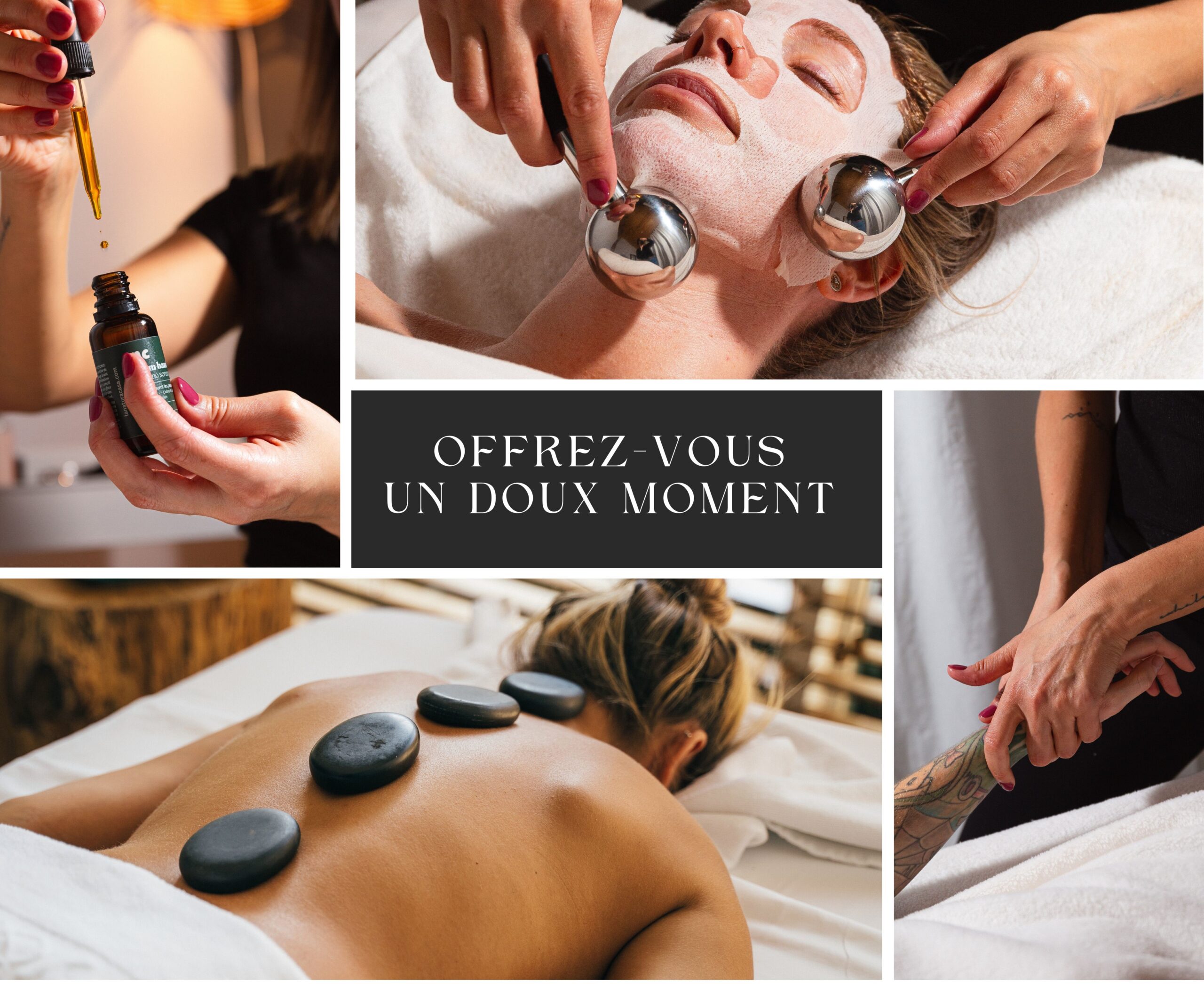 Le soin débute avec un massage du haut du corps et du cou, suivi d’une serviette chaude, d’une brume aromathérapie et d’un masque en feuille sur le dos. Pendant le temps de pause du masque, un massage des bras et des mains est réalisé. Ensuite, le masque est enlevé et un sérum est appliqué avant un massage du visage, de la nuque et du cou. Le soin se termine par un massage de la tête, des cheveux et des mains. Un moment de relaxation complet pour tout le haut du corps.
